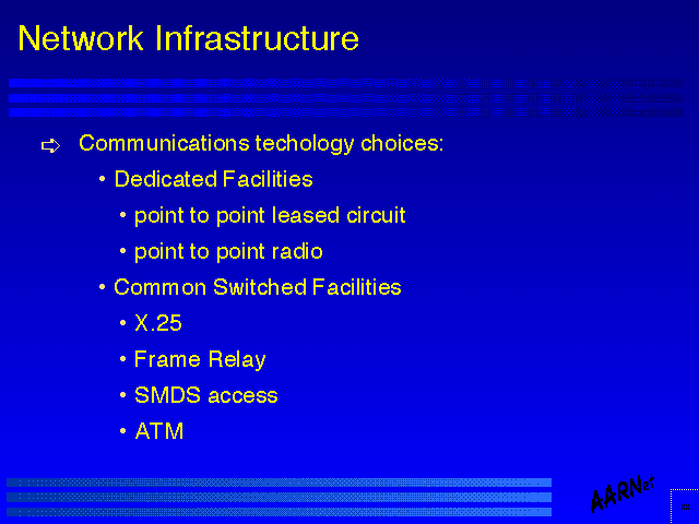 At this stage ATM is perhaps removable from this list, in so far as it does not form an integral part of many network service infrastructure technologies today, and its inclusion here is as much as expression of some form of faith that ATM will be a technology of choice in future high speed infrastructure services.