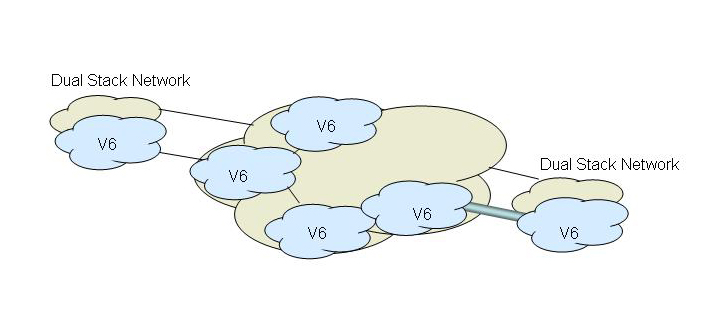 Progressive stages of the transition would see these IPv6 "islands" interconnect directly, and also see the commencement of the older IPv4-only networks converting to a dual stack environment.