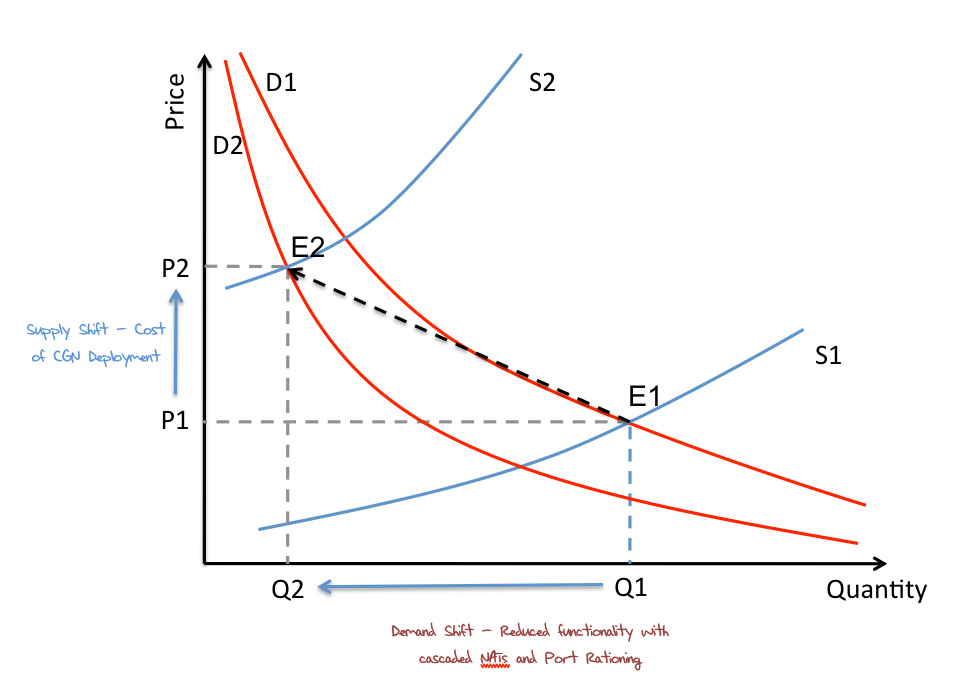 Complete exhaustion of the unallocated IPv4 address space implies that service providers may need to deploy NAT devices within their own networks if they wish to service an expended set of IPv4 customers. The deployment of such Carrier Grade NATs (CGNs) will impose higher costs of the service provider without improving the service provided to the customer. Indeed the case can be made that the CGN deteriorates the service provided to the customer, so in a heterogeneous competitive environment where the address scarcity is not uniformly experienced, any service provided that attempted to pass on the costs of CGN deployment to its customer base would find itself at a short term competitive disadvantage to its competition though higher prices and lower service quality.