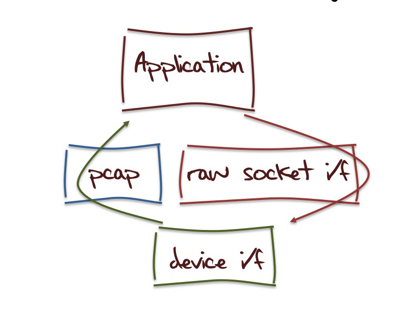 The pcap interface allows the application to define a packet handler which is invoked each time a packet is assembled that matches the filter expression.
